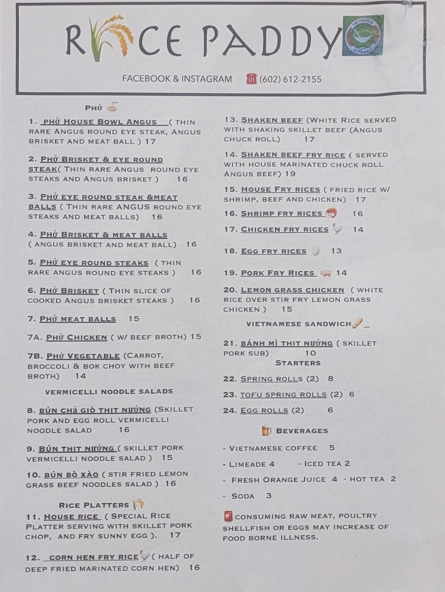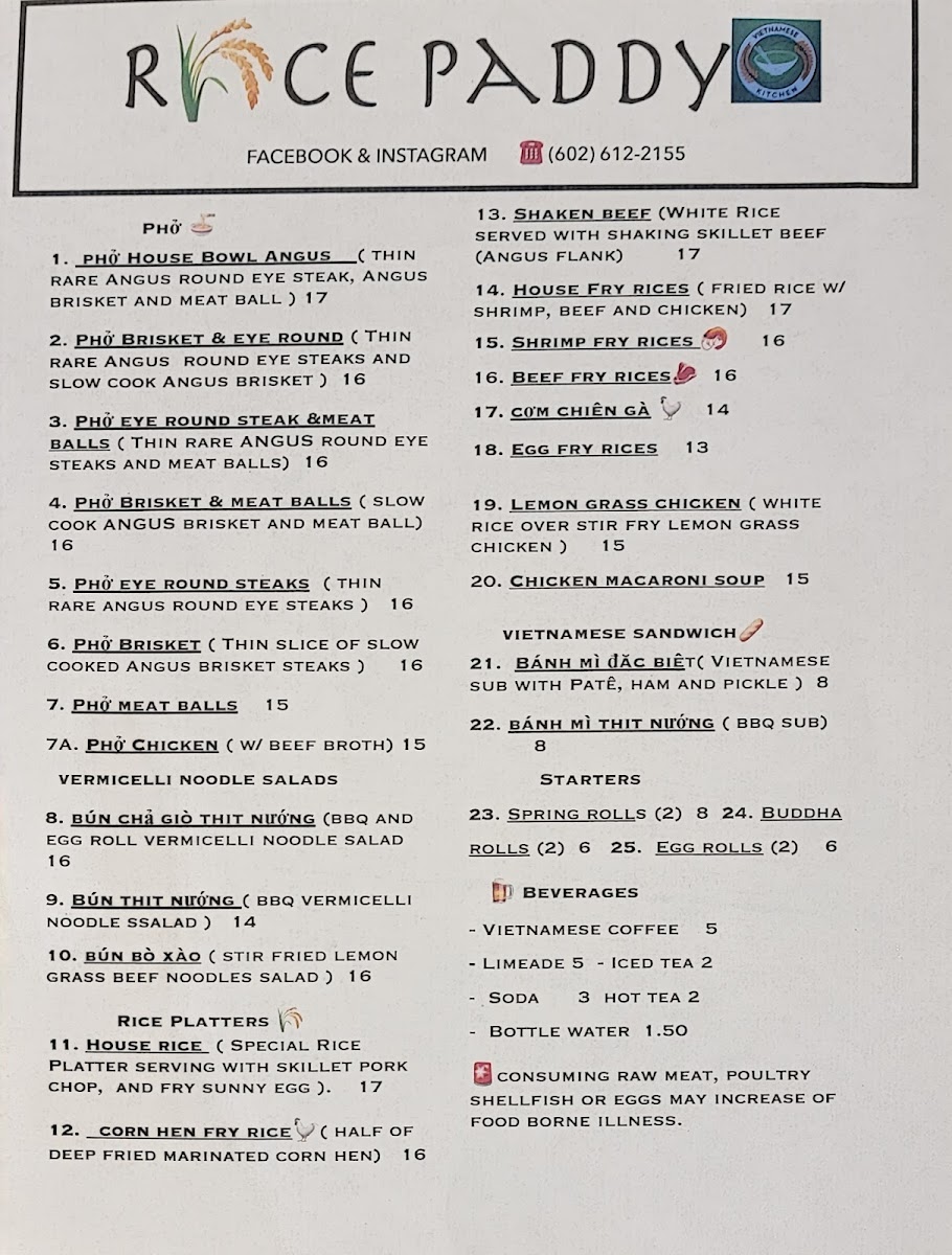 Welcome to Rice Paddy, a delightful Vietnamese restaurant nestled in Phoenix, Arizona, where culinary artistry meets heartwarming hospitality. Located at 6219 N 7th St, this gem seamlessly blends authentic Vietnamese flavors with a cozy, spotless dining atmosphere, making it a must-visit destination for food lovers.